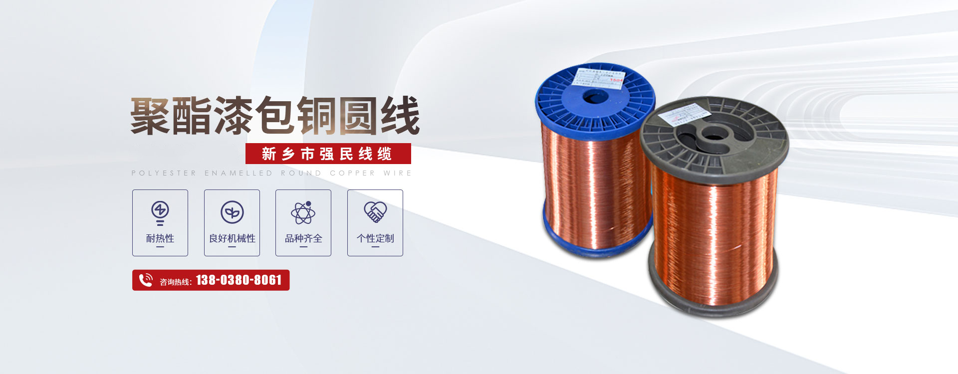 新鄉市強民線纜有限公司主要銷售各種規格高性能銅漆包線、鋁漆包線、紙包線和玻璃絲包線,年銷售能力3萬噸。  公司技術力量雄厚,設備精良,所銷售的鋁漆包線與玻璃絲包線等產品性價比高,采用國內催化燃燒環保節能型漆包機、臺灣技術的雙變頻調速拉絲機等全套銷售漆包線設備和采用IEC標準對漆包線進行檢測的全套測試儀器,能滿足各類漆包線產品銷售需要。嚴格的質量控制體系,科學的產品檢測手段,使產品的質量得到更充分的保證,在同行業中享有很高的聲譽。  公司始終把產品質量放在重要地位,制定了高于國際行業標準的公司內部質量執行標準,在過程中我們經歷了抓電阻、抓漆粒、抓耐壓、抓回彈、抓排線,在每一次活動中都得到了明顯的預期效果,銷售工藝不斷的完善,檢測力度的大幅度提高,保證了漆包線產品過硬的質量。企業通過了GB/T19001-2008-ISO9001:2008標準認證和ISO14001:2004環境管理體系認證。漆包線,不僅暢銷全國,還不遠萬里出口到非洲剛果等地。公司以“互惠互利、誠信發展”的服務宗旨,配以完善的售前售后服務,全力為用戶提供各種漆包線的制造和定制,贏得了合作企業的廣泛好評。  我公司本著**質量,不斷改進管理,滿足社會需求,保證客戶滿意的方針,開拓出一條規模化發展,**經營的新企業之路,熱忱歡迎海內外各界友人惠顧。
